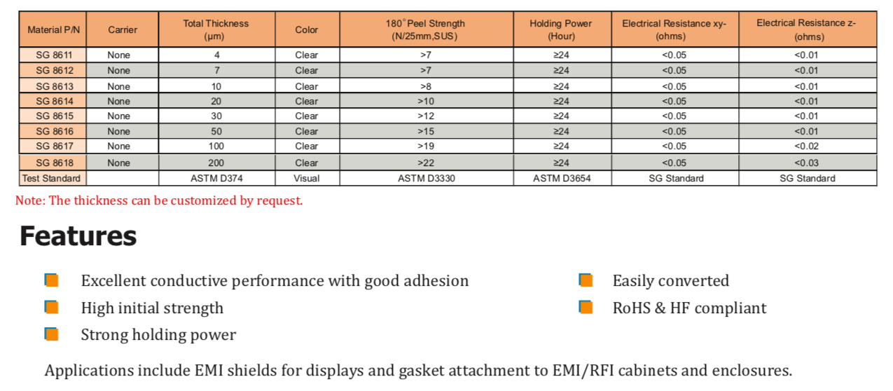 ShielditeTM 8610系列雙面膠是一種填充有導電填料的無支撐丙烯酸壓敏膠。為在X、Y和Z軸上具有導電性的電子設備提供了出色的粘合解決方案。